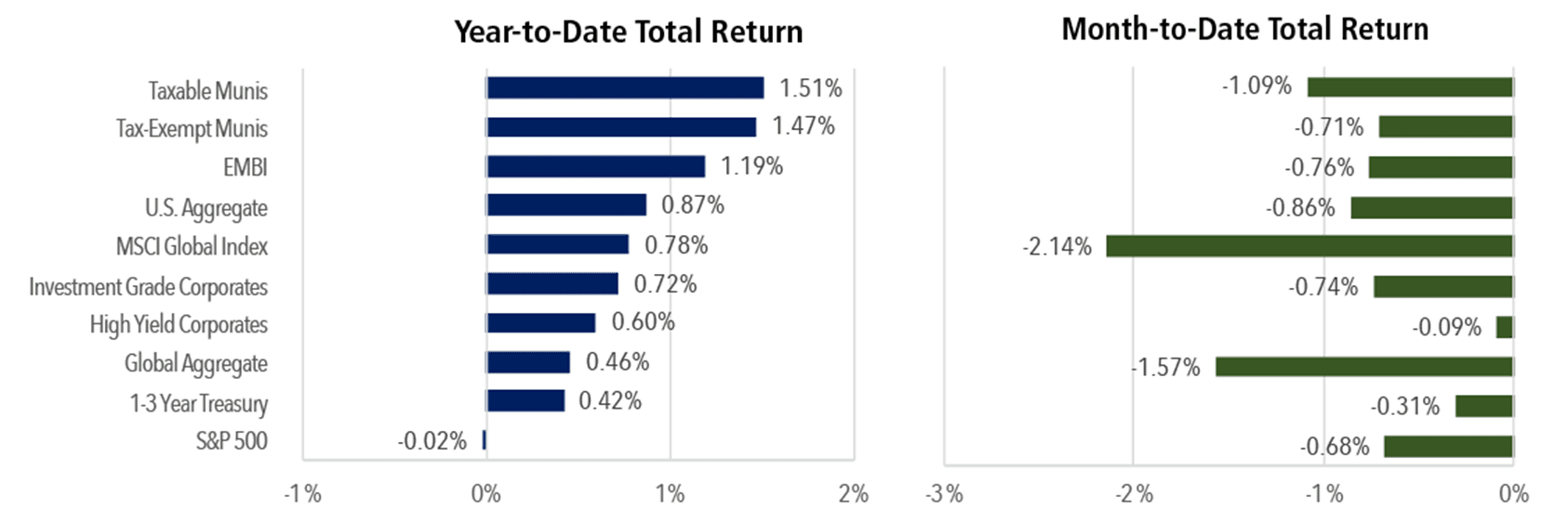 High Yield: High yield has traditionally safeguarded capital during risk market sell-offs, and this week was no different. The S&P 500 dropped0.64% through Thursday’s close, while the high yield market declined just 0.04%. High yield remains an important part of a diversifiedportfolio.